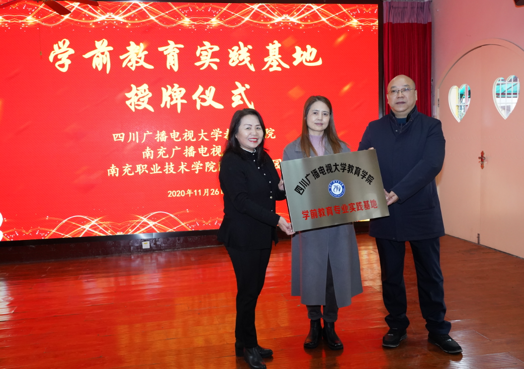 11月26日,初冬乍寒,四川广播电视大学学前教育专业实践基地签约授牌仪式在南充职业技术学院附属幼儿园隆重举行。