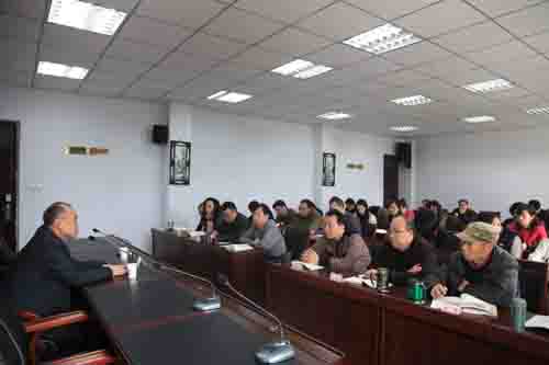▲党忠教授给全体党员干部和教职工授课