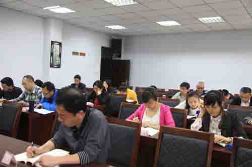 ▲5月8日,南充电大组织全体党员干部召开学习专题会议。