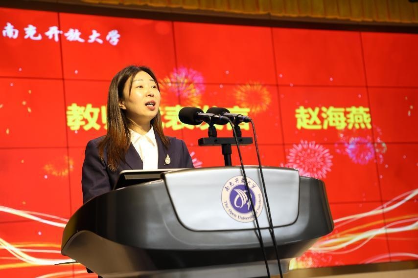 ▲教师代表赵海燕老师发言