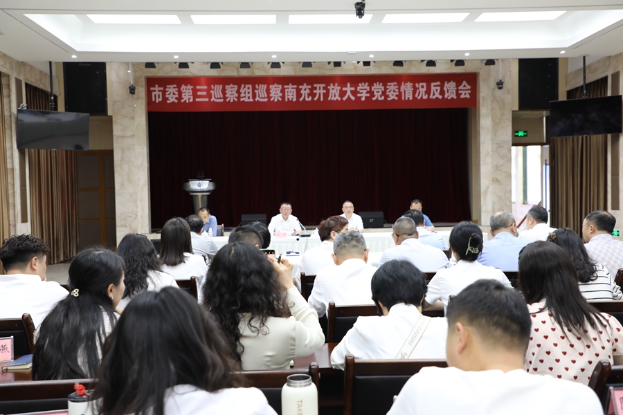 市委第三巡察组副组长李小红,市纪委监委、市委宣传部、市委巡察办相关同志,南充开放大学校领导和全体教职工参加反馈会。