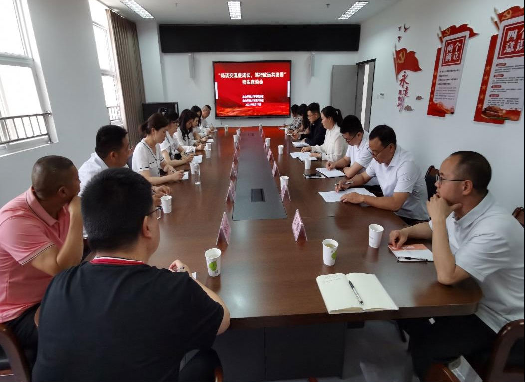 随后,三校师生在凉山开放大学宁南分校召开题为“畅谈交流促成长 笃行致远共发展”师生座谈会。座谈会上,高坪分校和宁南分校校长分别就本校办学历史沿革、机构设置、教学运行及办学特色等情况作了介绍。高坪分校、凉山开放大学、宁南分校三校师生还就思政教育实践、融合协作发展等内容进行了详细的交流和探讨,对当前开放教育办学过程中存在的问题展开了讨论,在相互学习对方有益经验的同时,共同寻求解决问题的路径。三所学校最后表示,我们有着共同使命、共同责任及共同目标,希望今后加强交流,互学互鉴,共同发展,为推动开放教育高质量发展而努力。