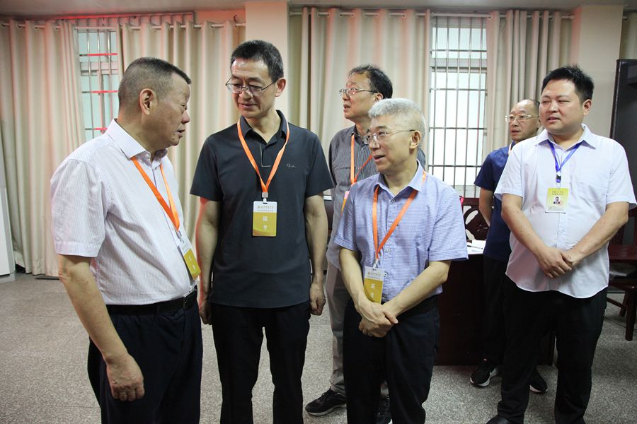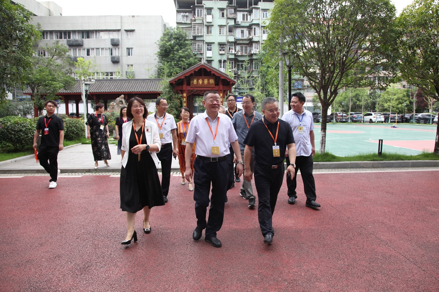 市政管局党组书记陈伟(前排右一)、局长袁伟平(前排左一)、南充开放大学党委书记校长昝平(前排中)巡查考试现场