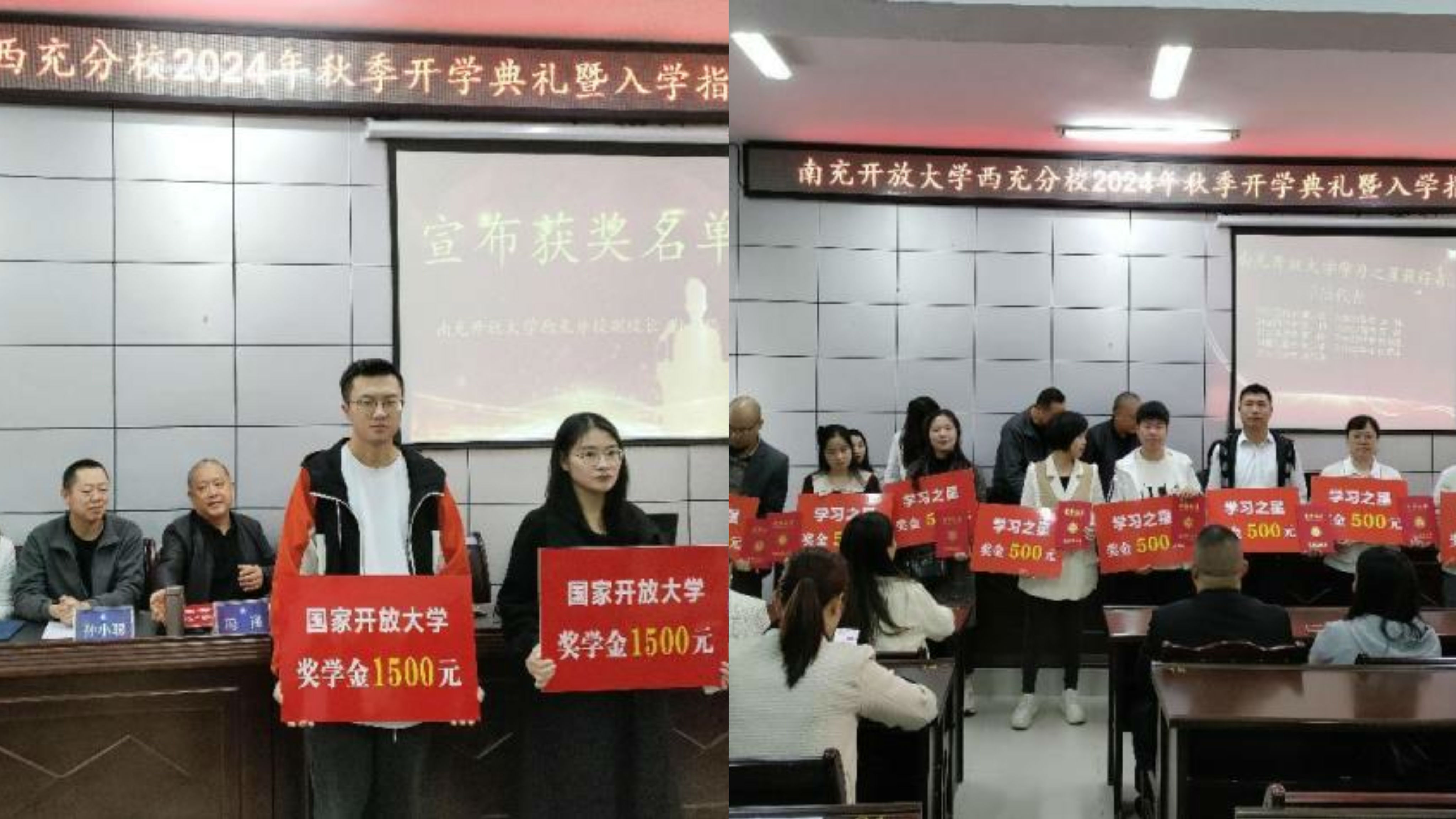 颁奖仪式环节,由孙小聪宣布了奖学金获奖名单,包括国家开放大学奖学金和南充开放大学奖学金获得者,以及学习之星获得者。颁奖仪式激励着在场的每一位新生以奖学金获奖者为榜样,勤奋学习,积极进取。