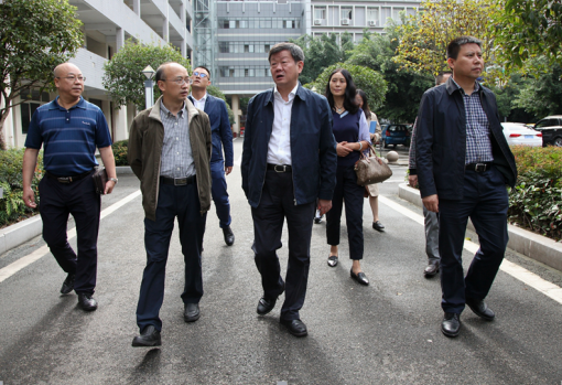 蔡存明在我校党委书记、校长昝平(右二)和市委教育工委专职副书记胡良华(右一)、副校长王旗(左一)的陪同下,考察我校社区教育和老年教育情况。