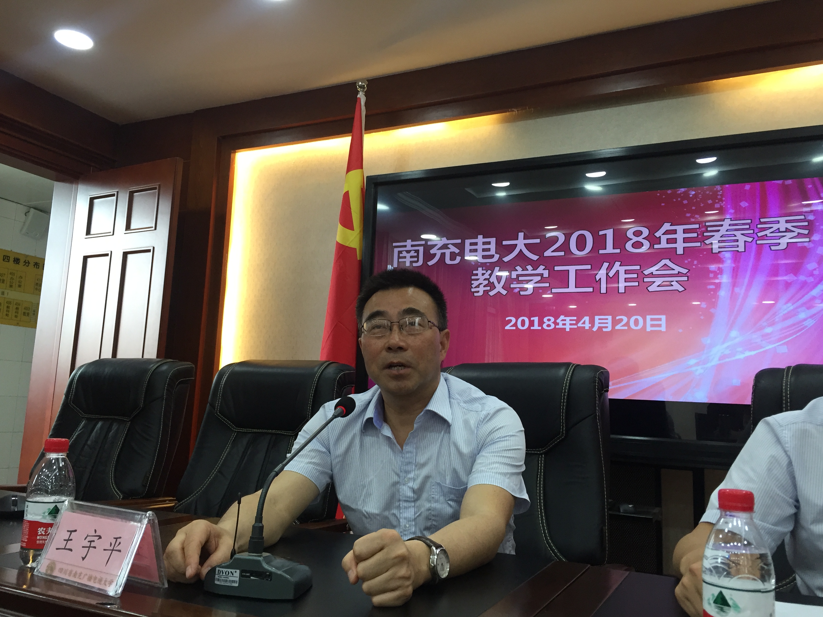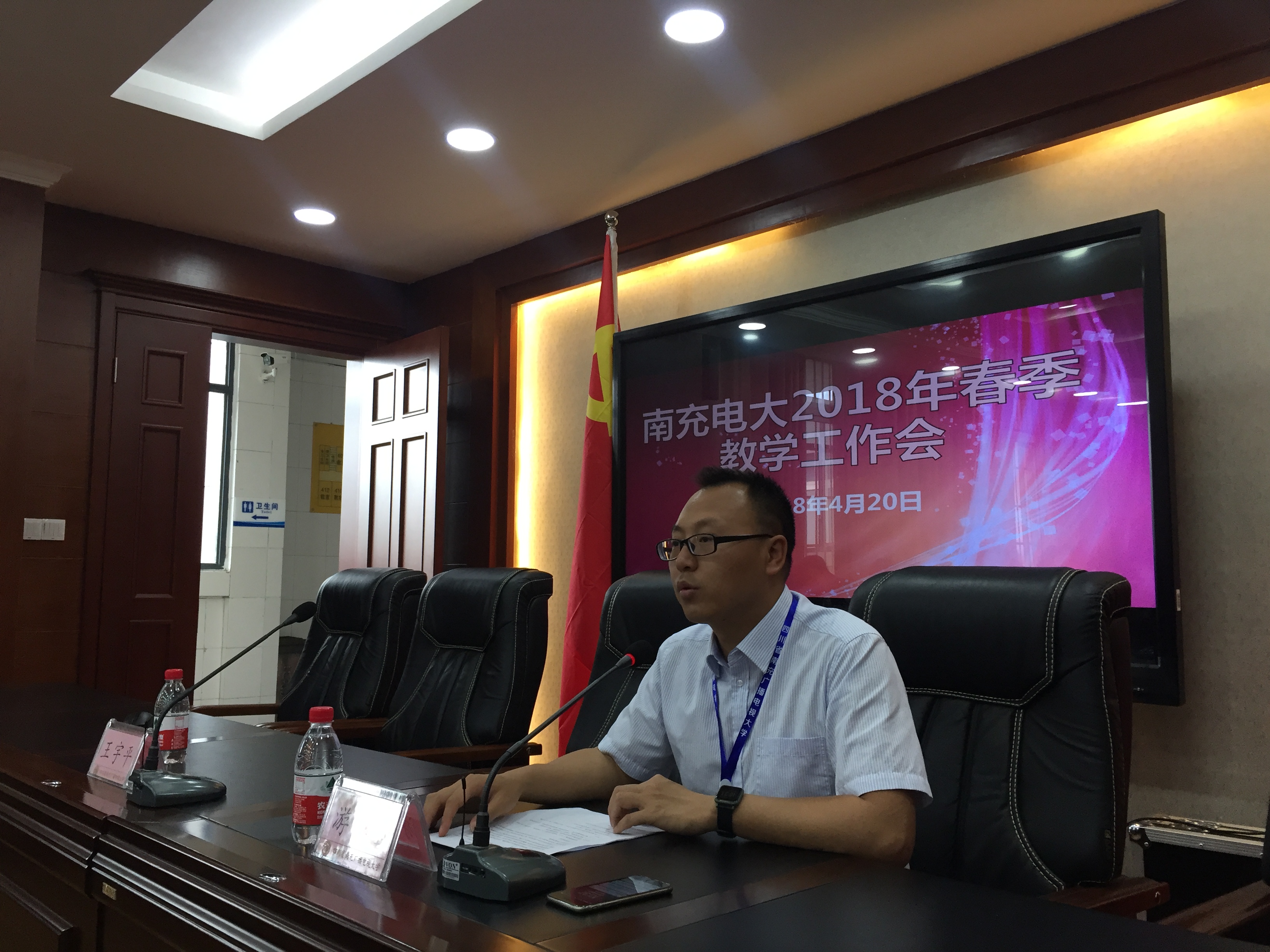 南充电大2018年春季教学工作会于4月19日上午在我校403会议室召开,南充电大及县级电大分校共47位教师参加了会议,会议由教务处处长游华奎主持,校党委书记、校长昝平、分管副校长王宇平参加了本次会议,四川电大党委副书记、校长尹析明也莅临会议现场并讲话。