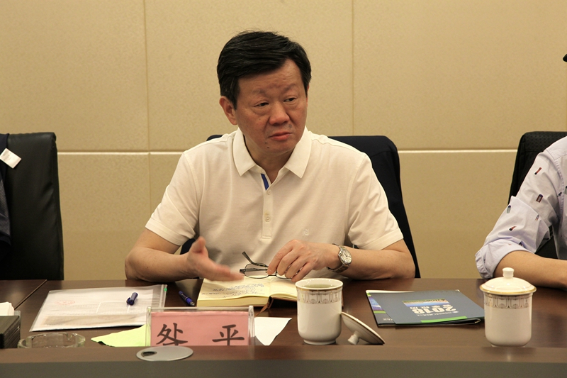 我校党委书记、校长昝平向客人介绍我校情况