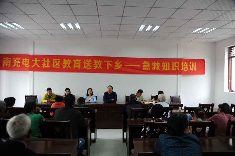 5月31日,南充电大副校长、校精准扶贫领导小组副组长蒲晓波及校精准扶贫领导小组办公室、社区教育处负责人驱车百里,赶赴南部县大王镇羊角山村开展送教下乡活动——急救知识培训。