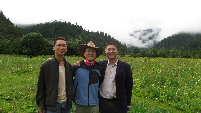 江勇军(右)与电大老师和同学相会在西藏