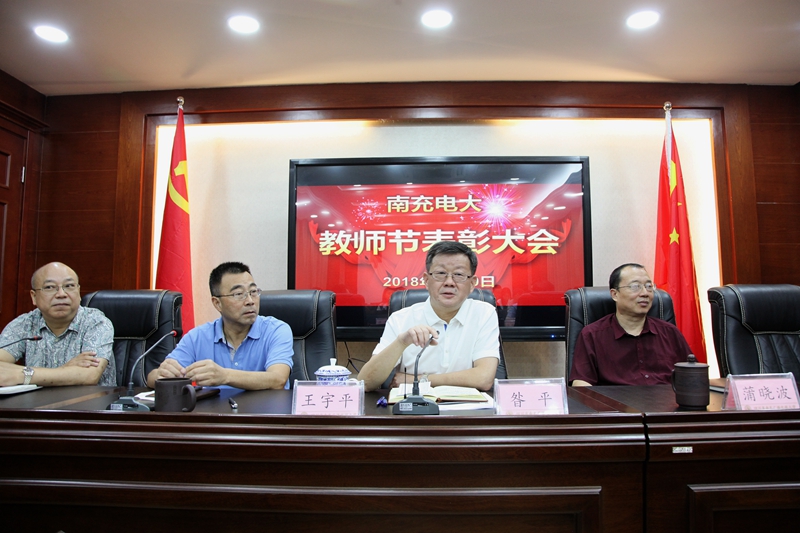 昝平代表党委和行政向全校教师致以节日的问候和崇高敬意,向受到表彰的个人表示热烈的祝贺。他希望全体教职员工,以先进为榜样,学习他们认真负责的工作态度、扎实工作的务实作风、爱校如家的奉献精神,在新的学期里,扎扎实实做好自己的每一项工作,推动南充电大教育事业再上新台阶。
