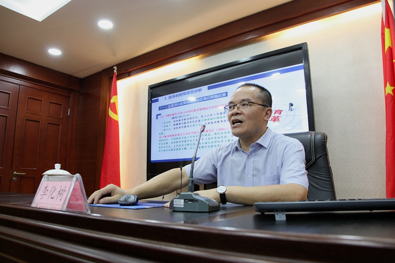 2018年9月10日第34个教师节当天,我校邀请四川省教育发展研究中心主任、西华师范大学李化树教授为全体教职工作了题为《关于地方开放大学全面深化综合改革的思考——以南充电大为例》的专题讲座。