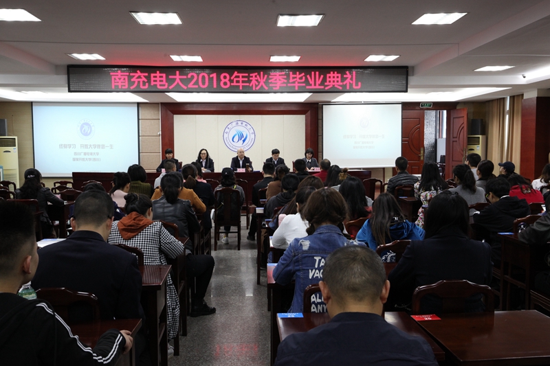 “宝剑锋从磨砺出,梅花香自苦寒来”。10月18日下午,南充电大直属部100余名2018年秋季毕业的学生代表兴高采烈的汇聚电大学术厅参加了毕业典礼。副校长王旗、直属部负责人和毕业生班主任参加了典礼。
