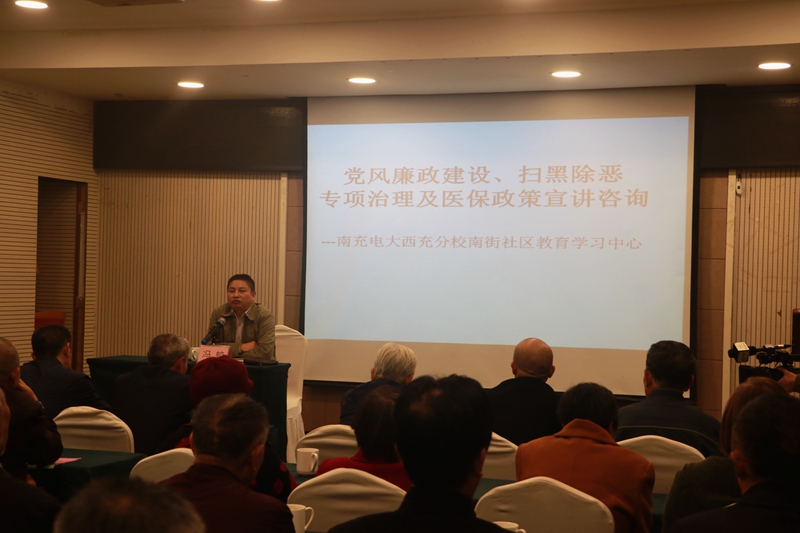 为了让社区居民进一步了解党风廉政建设、扫黑除恶专项治理和医保政策,2018年10月16日,南充电大西充分校在南街社区组织了专题宣讲咨询活动。本次活动由西充分校主办,西充县医保局和晋城镇南街社区承办,参加活动的有110余人,南充电大负责社区教育的领导莅临宣讲咨询活动指导,活动圆满成功。