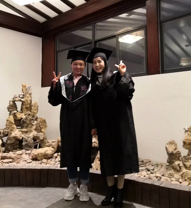 同班同学李海兰(左)和陈兰兰双双获得英语专业学士学位