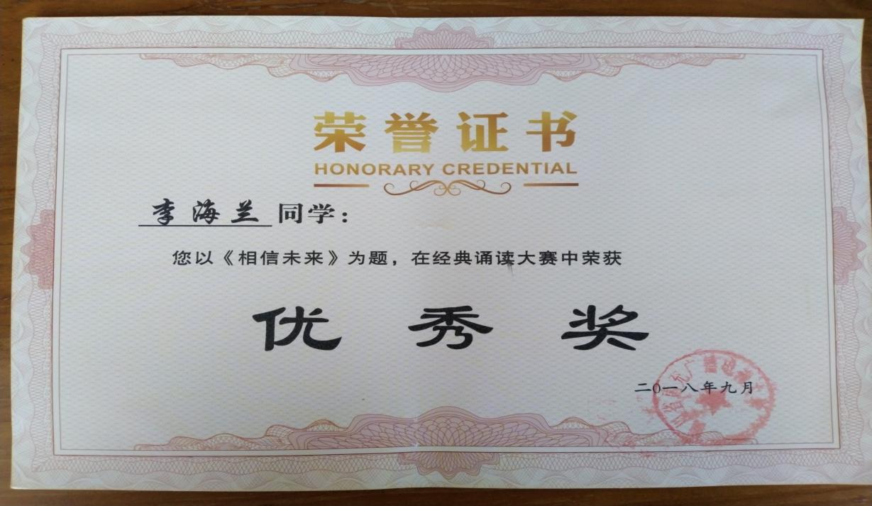 李海兰获得南充开放大学校经典诵读大赛优秀奖