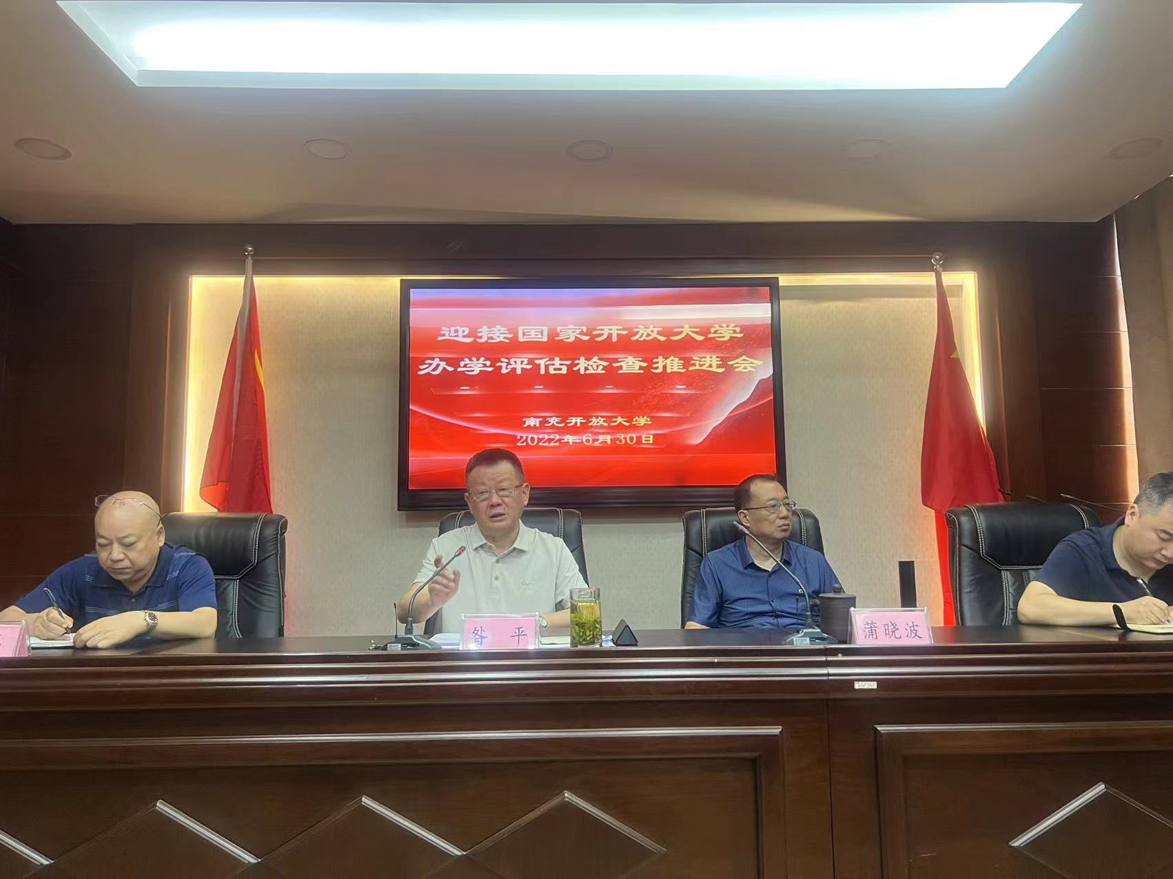 针对近期国家开放大学将对四川开放大学进行办学评估,我校作为两个接受延伸评估检查的市州开放大学之一,昝平希望同志们要以先进为榜样,提振精神,保持旺盛斗志,站在对四川开放大学系统负责的高度,对标评估指标,认真准备,以全新面貌和最佳状态迎接评估,为南充开放大学的转型发展、升级发展做出应有的贡献。