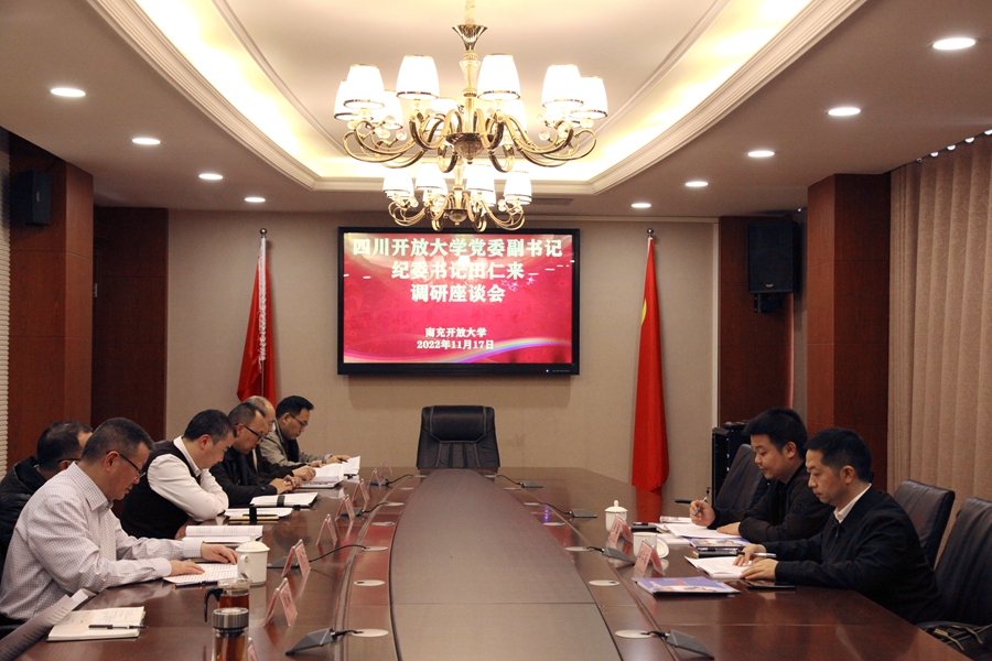 11月17日至18日,四川开放大学党委副书记、纪委书记田仁来及招建处招生科科长黄磊一行到南充开放大学考察调研。南充开放大学党委书记、校长昝平等校领导陪同考察。