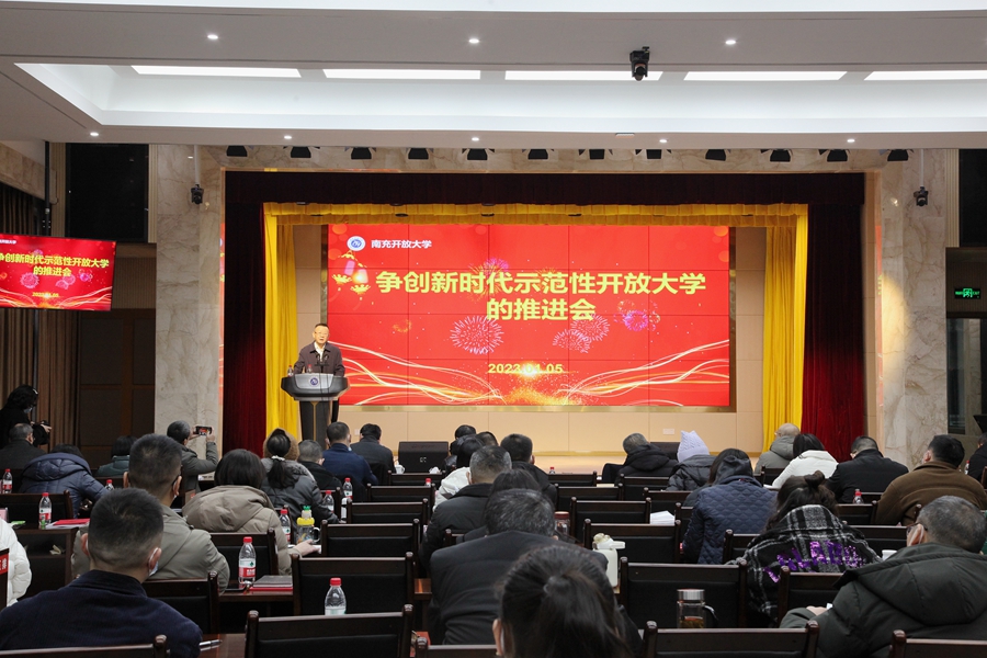 2023年1月5日,南充开放大学召开了争创“新时代示范性开放大学”推进会,南充开放大学全体教职工和各县级分校、中心的代表参加了会议。