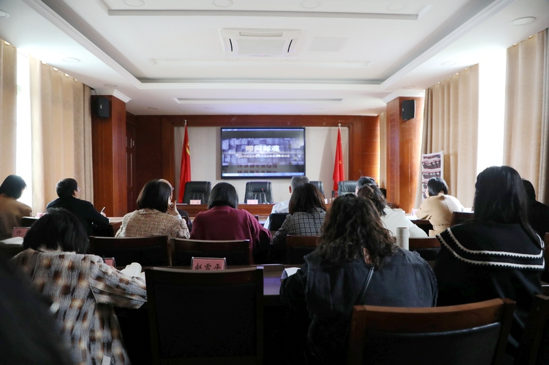 图2.参与人员集体观看《叩问师魂》警示教育片