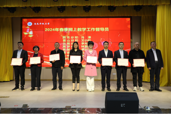 会议还表扬了2023年秋季“优秀课程辅导教师”“网上教学优秀组织者”,并为网上教学工作督导员颁发了聘书。教学科研处副处长潘菁作2023年教学工作总结,安排布置了2024年教学重点工作;教务处处长游华奎作教务工作业务培训。参会人员还集体观看了《行走的书院》第二季南充篇,《千年绸都绘就城乡和美新画卷》“以评促建、彰显特色”国家开放大学对南充开放大学办学评估实录、“让开放大学的春风温暖世界”新时代示范开放大学验收评估实录三个专题片。