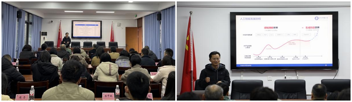 本次活动紧扣教育教学中心工作,精心组织三场专题培训,为教职工送上 “精准干货”。刘波教授作《AI 在教育教学中的场景应用》专题报告,系统阐释教育信息化前沿理论,重点讲解 AI 技术在教学实践中的具体应用场景与实操方法;徐春梅副教授以《学术论文研究范式与写作规范》为题开展专题辅导,结合《当代职业教育》发文实例,深入剖析论文选题、撰写、投稿等关键环节的注意事项与优化路径;于洪波科长围绕《开放大学教学教务综合业务培训》进行专题讲解,针对教学计划制定、实践教学组织与学位论文指导等重点工作提供专业业务指导。