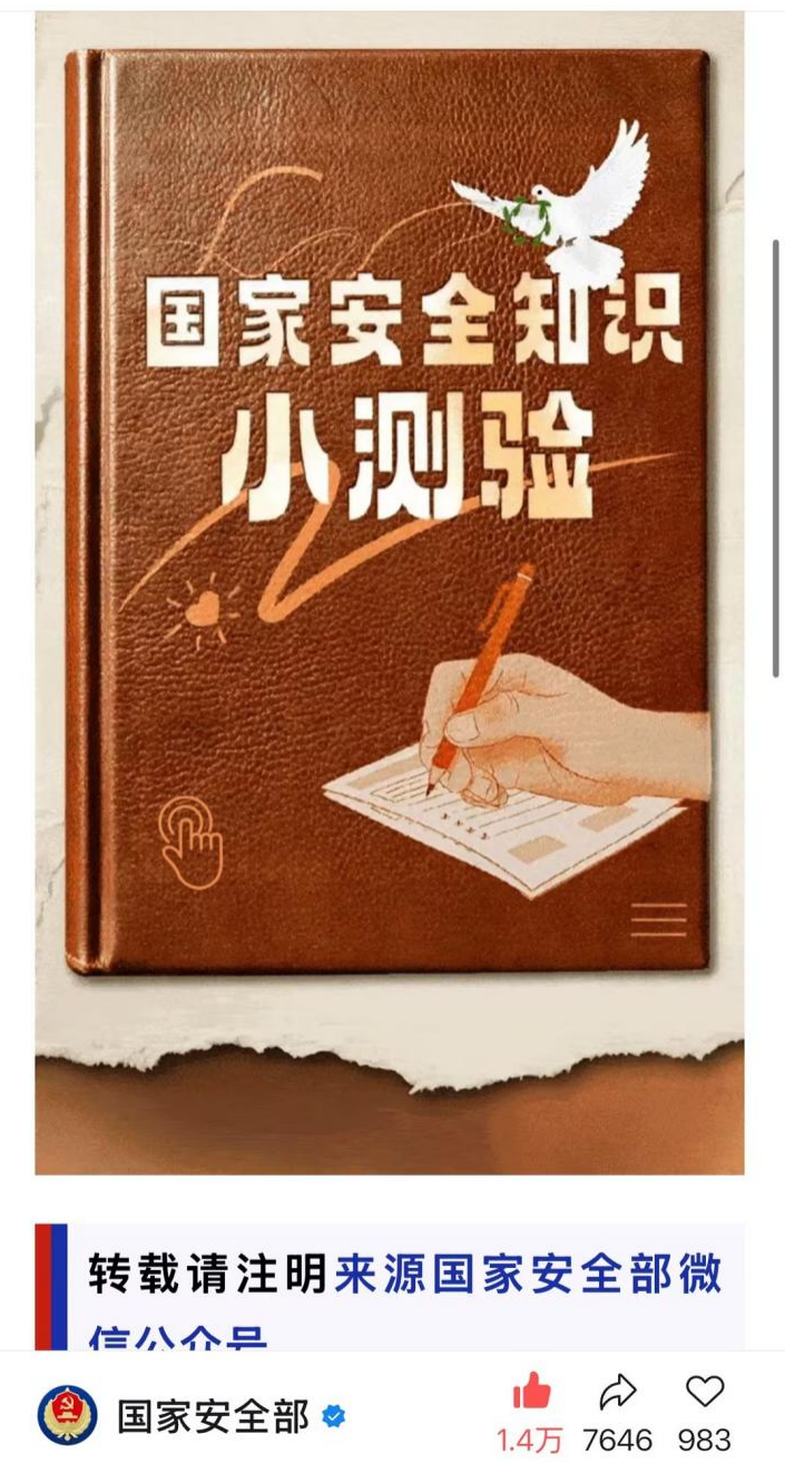 本次活动还创新学习形式,积极拓展线上教育渠道。学校组织全校师生关注“国家安全部”官方微信公众号,通过公众号推送的权威解读、案例剖析、普法动漫等丰富内容,系统学习总体国家安全观及相关法律法规知识。同时,师生们踊跃参与公众号开设的“国家安全知识小测验”,以在线答题的方式检验学习成效,巩固学习成果。
