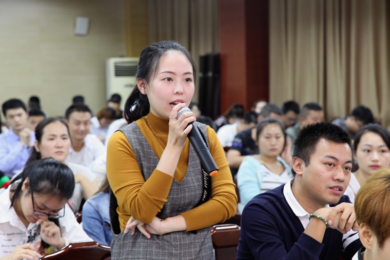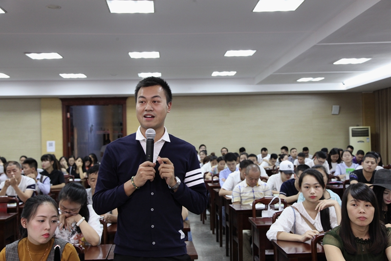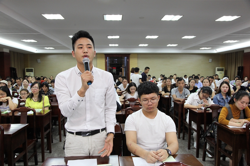 9月22日晚,在南充电大2017年秋季新生开学典礼上,学生们的提问一个接着一个,教务处长游华奎、招生处长曲阳、计财处长阳家东等部门的负责人则耐心地一一回答。《开放教育学习指南》的内容,通过问答的方式,让学生彻彻底底的弄明白了。这开学第一课,气氛活跃,学生想听,成人教育的特点得到充分体现。在热烈的掌声中,新颖的开学典礼完美落幕。