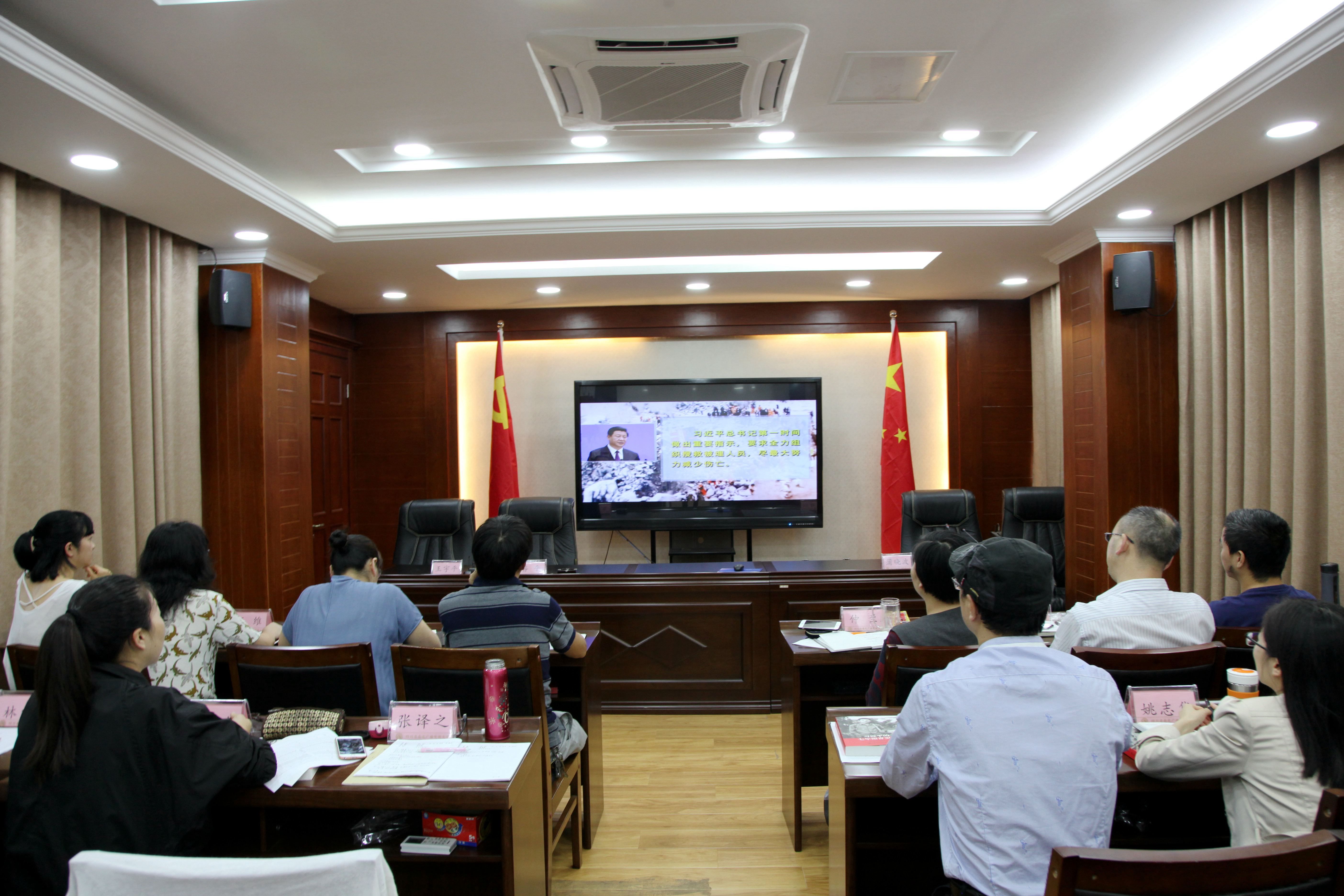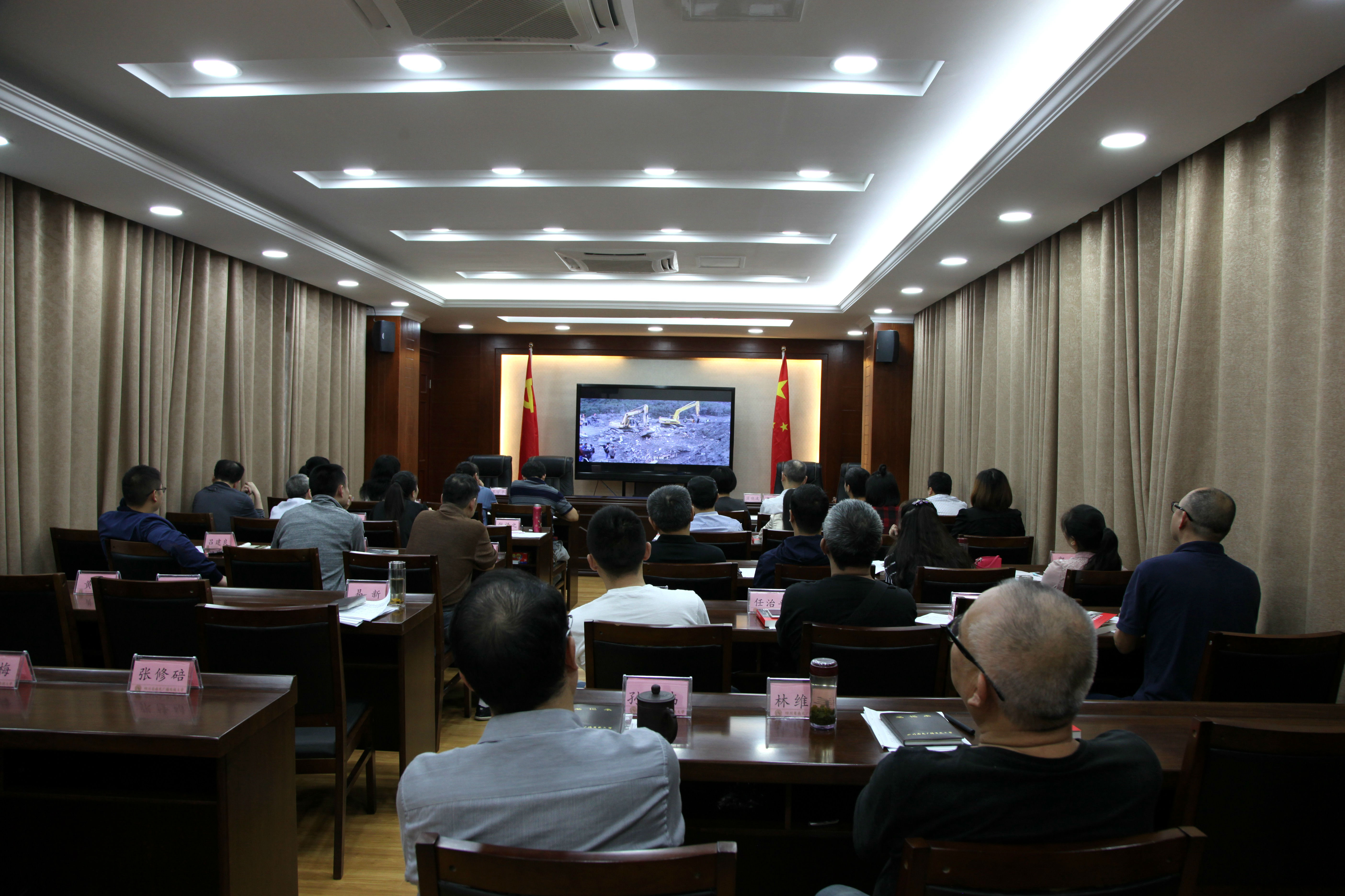 党课结束后,全体党员还集体观看了《山谷中挺起不倒的脊梁》、《为灾区群众撑起一片天》两部纪录片。