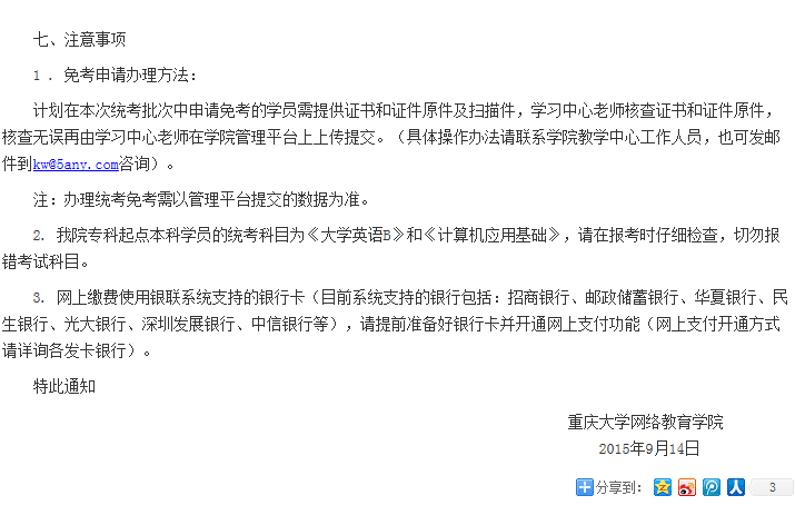 上一篇:关于2015年秋季9月份主题语音答疑安排的通知