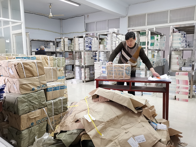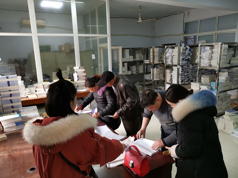 2019年春季的教材,各位班主任在2018年6月就征订完毕,吕建良老师迅速统计上报,是全省各市州电大中第一个将订单交到省电大的单位。为此,省电大在全省第一个向我校配发2019年春季教材,1月8日晚,第一批334包教材顺利配发到我校。寒假中,又陆续有近200包教材送达。负责教材分包清点、按教学计划分装到个人的胥俊华老师,不辞辛劳,寒假中加班清点分装,2019春季一开学学生就领到了教材。