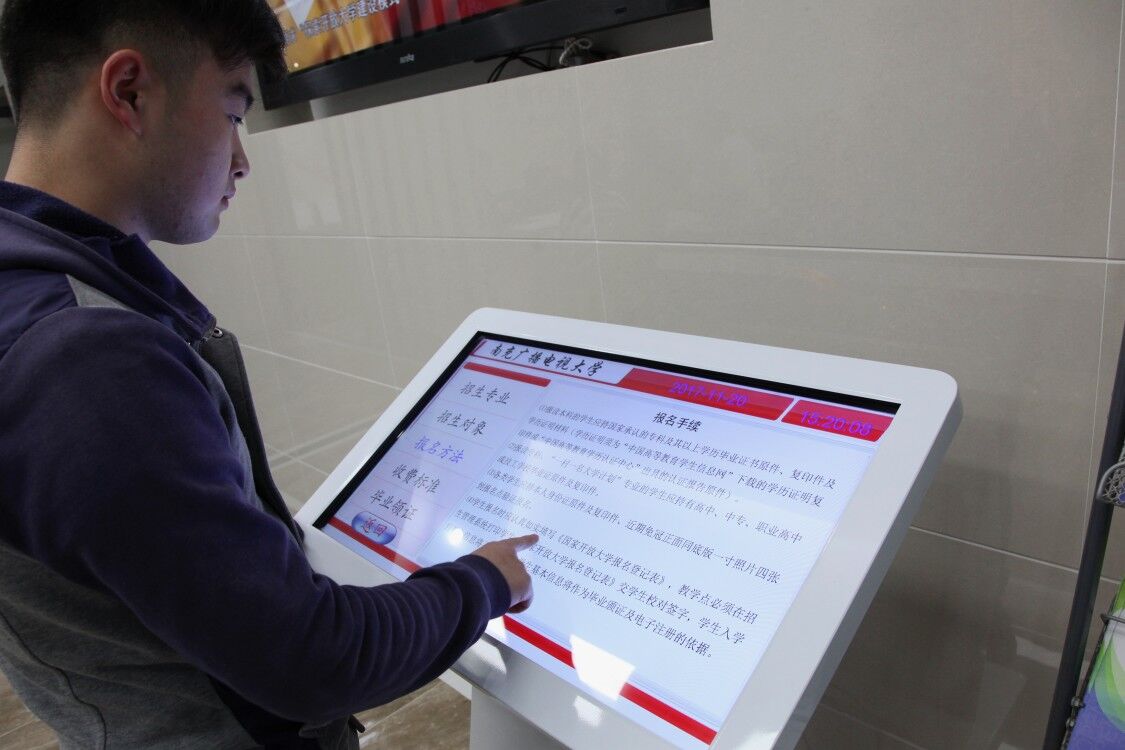 重建后的招生服务中心标识更醒目,辨识度更高,大厅更加宽敞明亮,休息区域温馨舒适,优质的体验环境给予学生家的温暖。高端的电子触摸屏给学生带来许多便捷。通过与触摸屏的亲密接触,学生能迅速进入网站了解国家开放大家学习方式、考试形式,以及南充电大学校概况、新闻信息等,学生一进门就被电大开放的教育环境深深吸引,迫不及待地想开启新的“学习之旅”。