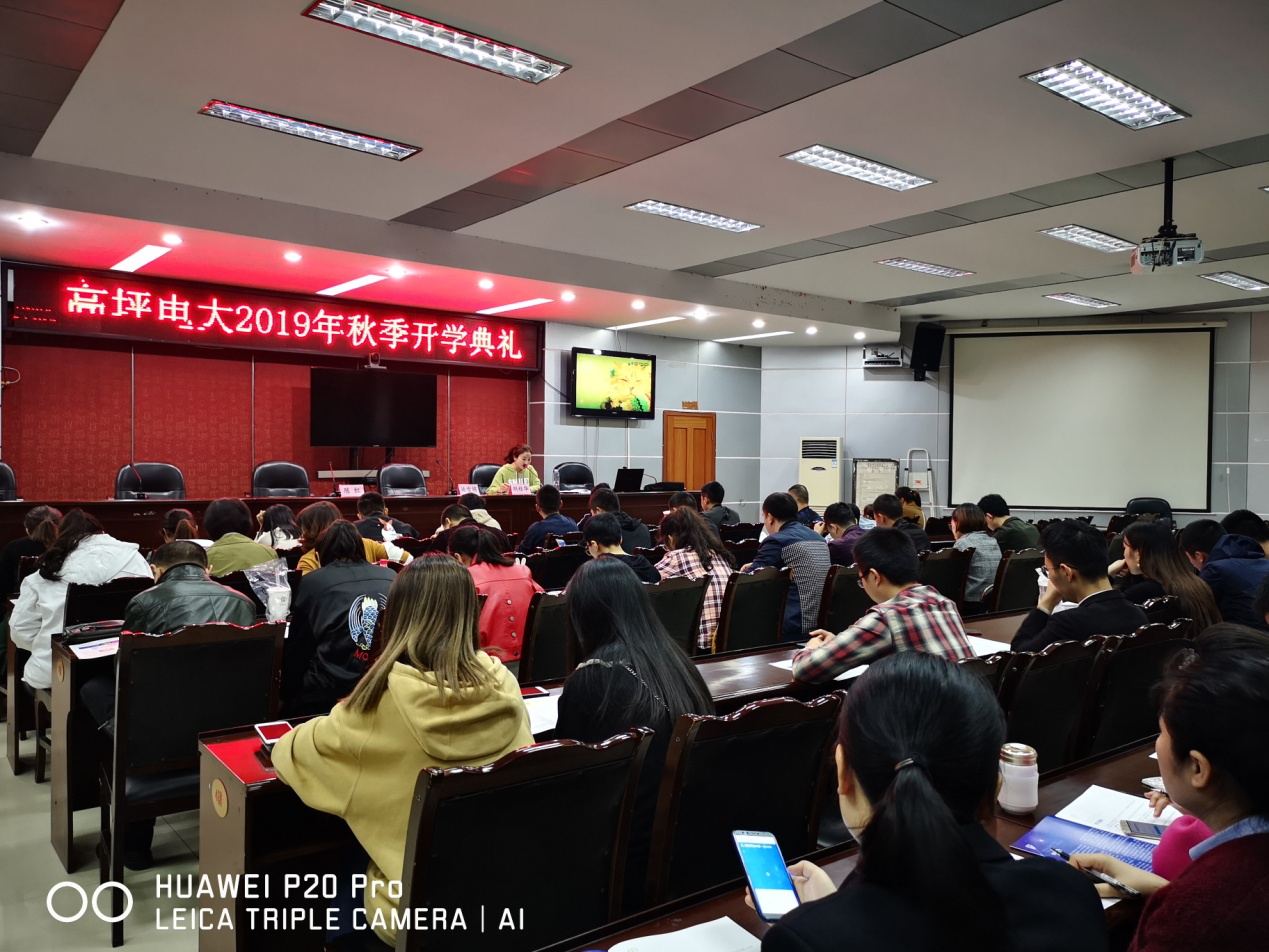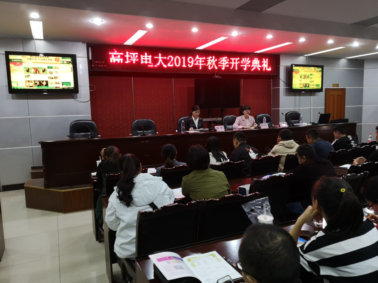 2019年10月17日晚,高坪电大2019年秋季新生开学典礼在高坪区教科体局七楼会议室隆重召开,60余名来自不同行业、不同年龄的新生代表参加了开学典礼。