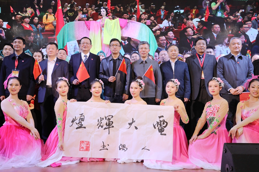 南充电大参加文娱展演的川北大木偶《千里共婵娟》节目中,由人偶所书“电大辉煌”书法作品,也由南充电大赠予四川电大收藏。