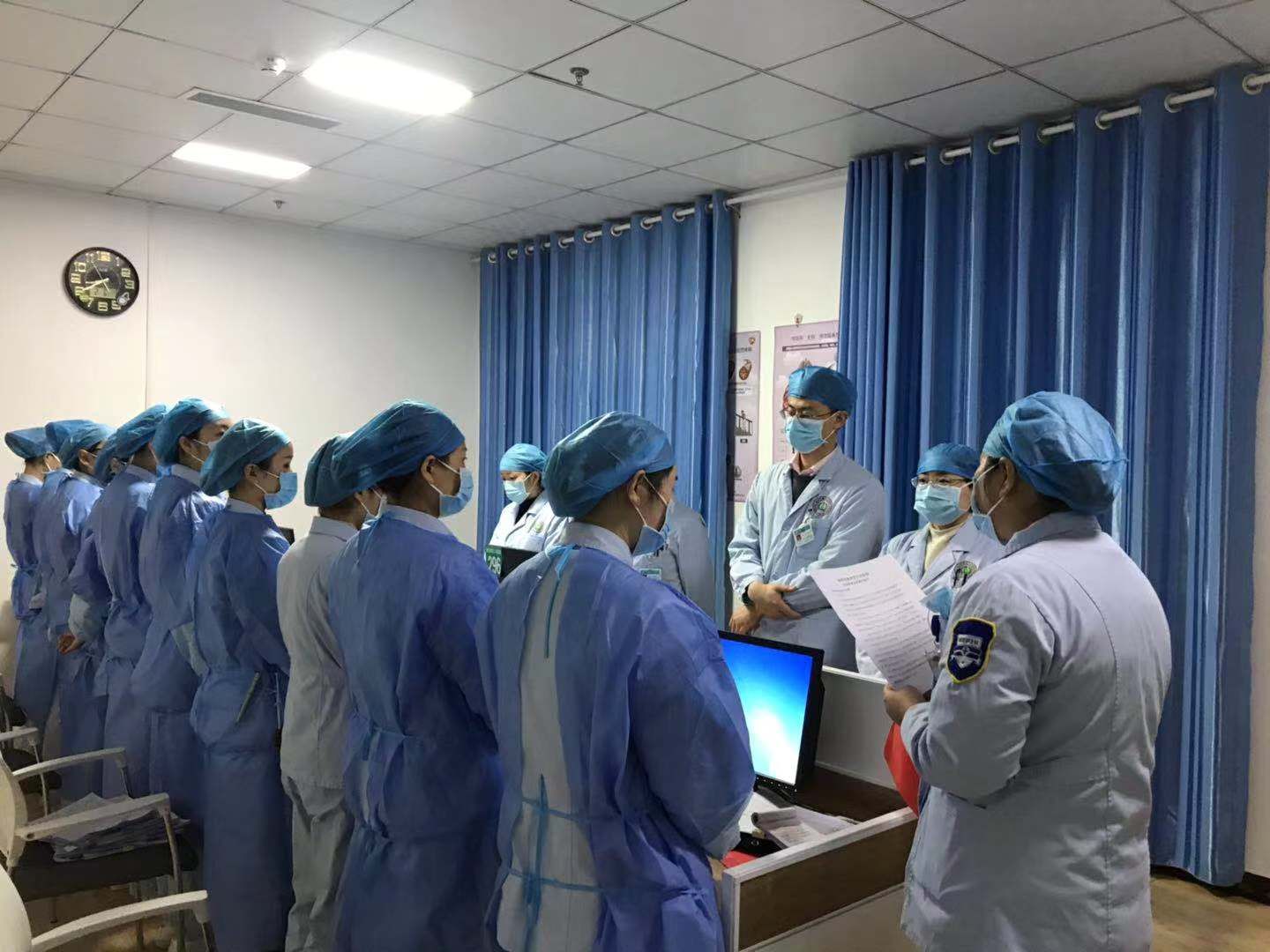 隔离期间,罗艳娟的工作任务不降反增。为方便管理,她将留院观察的人员分组,还临时任命小组组长,负责小组成员的安全。受疫情影响,医院部分工人辞职,人手不够,她还要组织公共区域的消毒工作。笔者问她是否有打想过退堂鼓。她说:“隔离在医院的时候,除了愧疚没有给予家人更多的陪伴,从没想过要当逃兵。任何人退,我们都不能退!与病毒作战是医护人员的天职,只有我们冲在最前面,人民才安心......有时检查完各小组的工作,安排好第二天的日程,已是凌晨,躺下去已是疲惫不堪......睁开眼睛又是抗疫的工作,根本就没有时间去琢磨情绪......”除了负责日常管理,她还担起了心理工作者的职责。她的下属比较年轻,没经历过这样的突发事件。不仅大过年的被隔离在医院,还随时有被感染的风险,心理压力必然是巨大的。考虑到这些情况,罗艳娟经常传达上级领导对同事们的关心,以安抚他们情绪,还鼓励他们好好锻炼,保养身体,解除隔离之后才有更好的身体和精力投入到一线工作中去。她说,虽然大家被隔离在病房,但是“齐心协力,共战疫情”这种精神让每个人都感受到了家温暖。同事们对她的感激之情让她也久久不能平静,为自己是医护人员而自豪,为自己是一名护士长而骄傲。