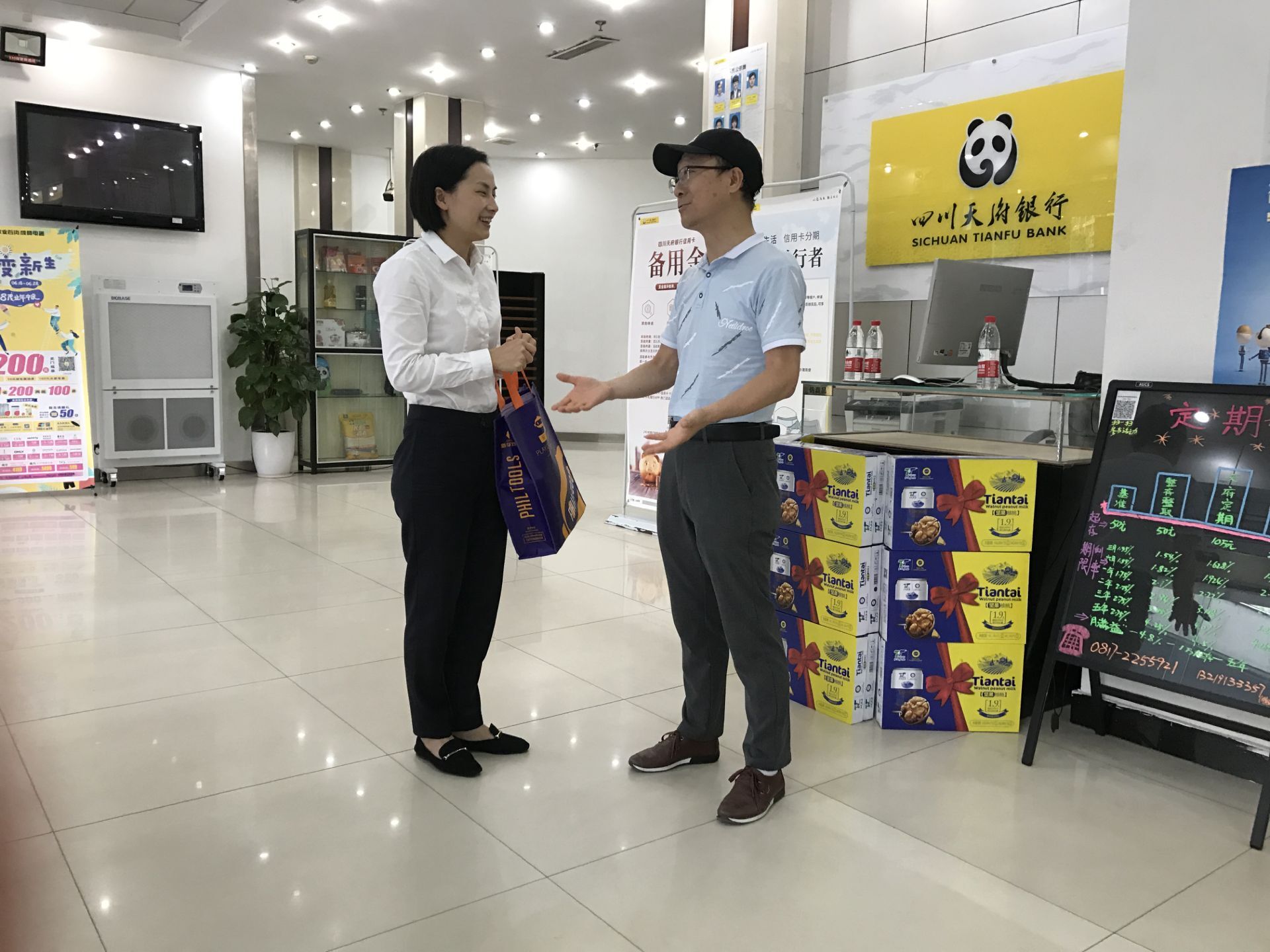 唐伦(右)与驻村第一书记曲阳的家属亲切交谈