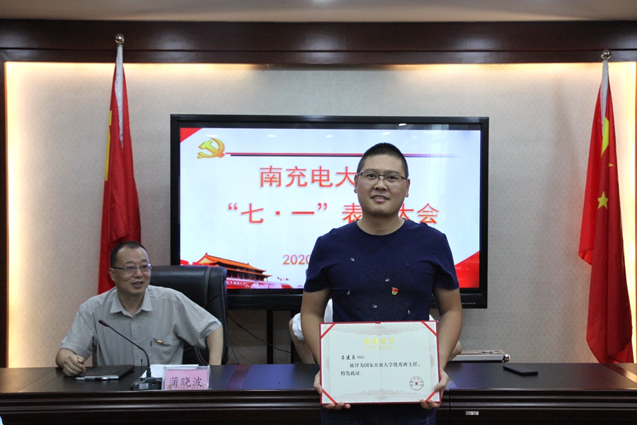 会议还代国家开放大学向吕建良老师颁发了“优秀班主任”证书。
