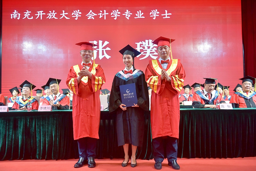 南充开放大学会计专业学士张璞接受拨穗礼获颁学位