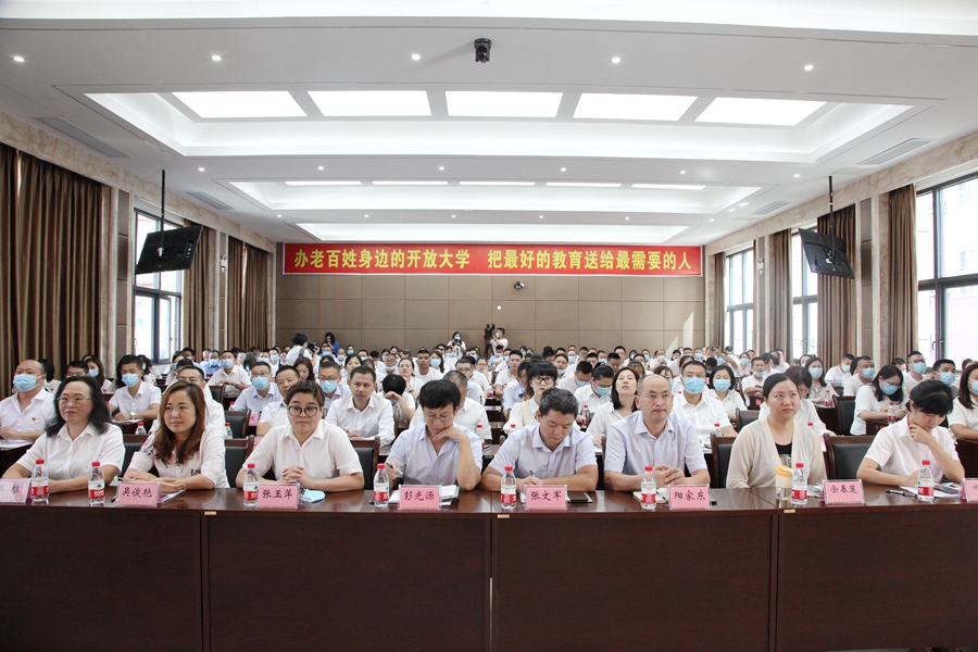 9月28日下午,南充开放大学举行了2021级秋季“农村带头人学历提升”项目开班仪式。市委组织部副部长、市委党建办主任陈卓夫;四川开放大学农林卫生学院、乡村振兴学院院长杨志超;南充开放大学校领导,南充开放大学各处、室、部负责人;南充开放大学各县(区)分校负责人、全市“农村带头人学历提升”项目全体新生及班主任等共计180余人出席会议。会议由校党委书记、校长昝平主持。