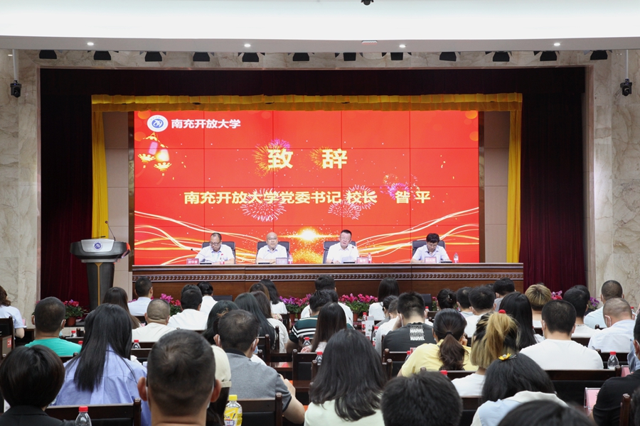 9月29日晚上,南充开放大学2021年秋季新生开学典礼隆重举行。南充开放大学党委书记、校长昝平出席典礼并致辞。直属部全体教师、部分处室负责人和工作人员,2021年秋季新生代表160余人参加了典礼。