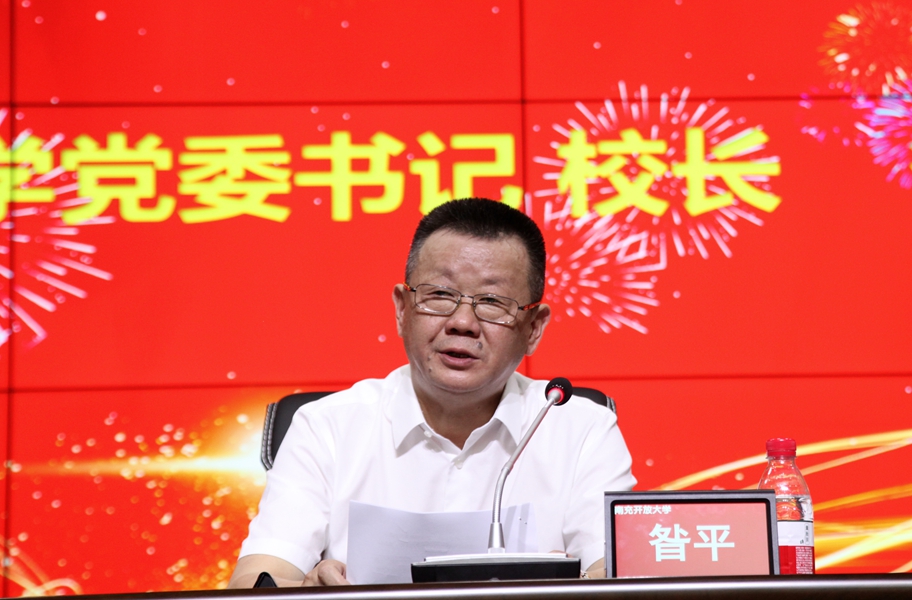南充开放大学党委书记、校长昝平在致辞中,对160名新生代表的到来表示欢迎和祝贺,对学生提出了希望和要求。他希望学生转变身份角色,端正学习态度,掌握学习方法,珍惜学习机会,处理好工学矛盾,积极参加学校组织的线上线下教学活动、班级活动和省开放大学组织的各类技能比赛,把个人发展融入到全面建设社会主义现代化国家新征程的伟大实践中,在实现中国梦的不懈奋斗中放飞梦想,为自己书写一个更加美丽的明天。