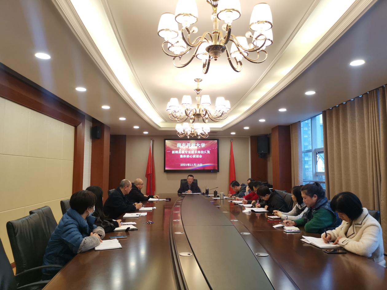 11月19日下午,学校党委对新聘任的高级岗位专技人员开展了任前集体谈心谈话。新聘任的10名教授、副教授参加了会议,会议由校党委书记、校长主持会议。