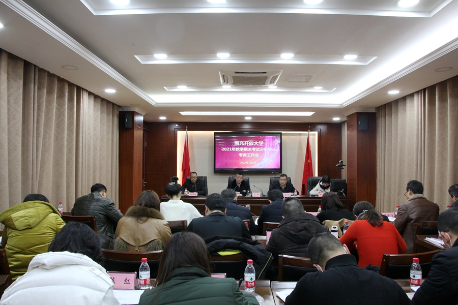 国家开放大学2021秋季期末考试将于1月8-9日进行,我校7个分校(学习中心)均设有考点,为保证2021年秋季分校考点期末考试工作的顺利进行,严格规范监考工作程序,2021年1月6日上午,南充开放大学召开了2021年秋季期末考试分校考点考务工作培训会。校党委书记、校长昝平、副校长曲阳、教务处处长游华奎、教务处副处长任璘、各分校主要领导及相关考务人员共计20余人参加了会议。会议由教务处处长游华奎主持。
