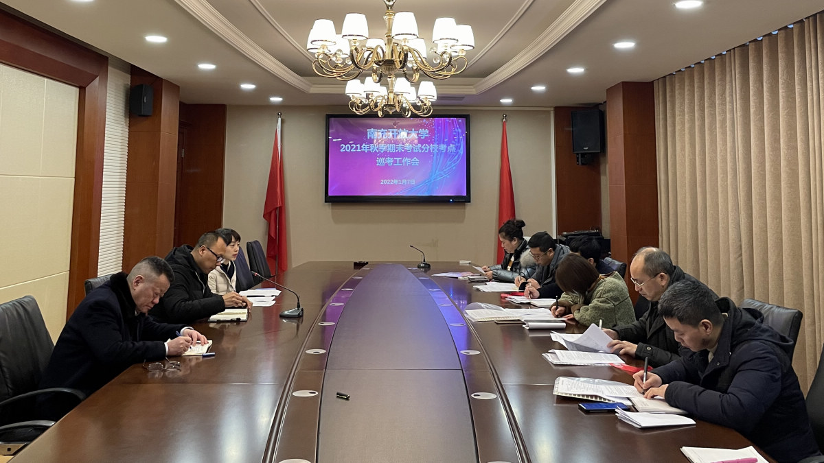 1月7日上午9:00,我校在511会议室召开了2021秋季期末考试分校考点巡考工作培训会。校党委书记、校长昝平和教务处处长游华奎、副处长任璘及阳家东等7名巡考人员参加了此次会议。会议由教务处处长游华奎主持。