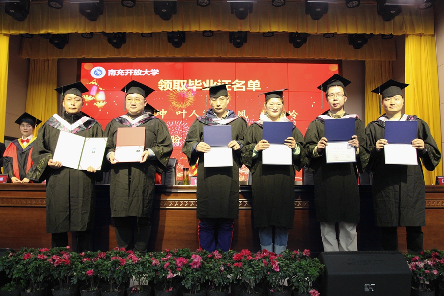 南充开放大学党委书记、校长昝平及6位导师代表参加典礼,典礼由南充开放大学网络教育中心负责人张文军主持。