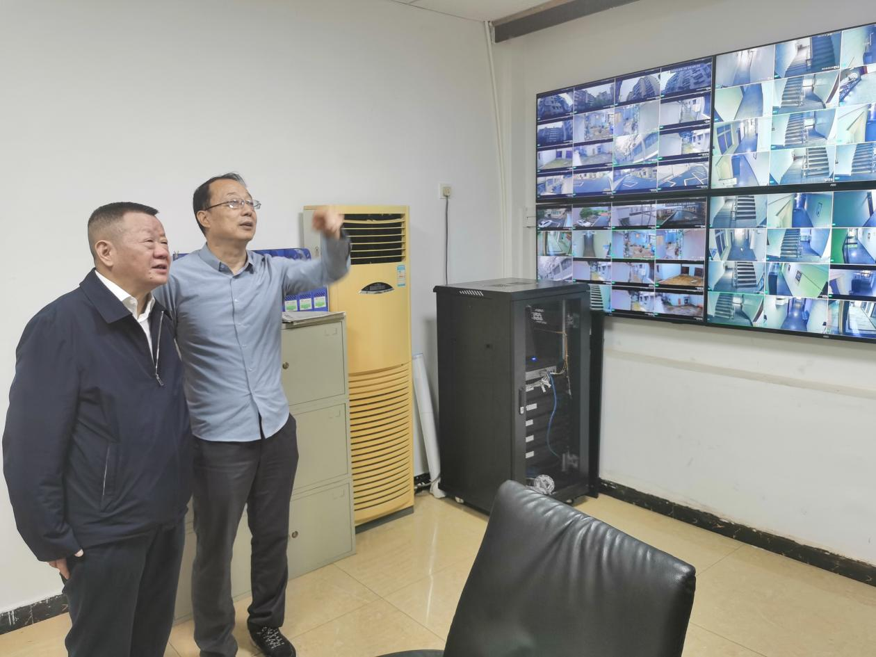 昝平(左1)、蒲晓波(右1)查看学校监控室