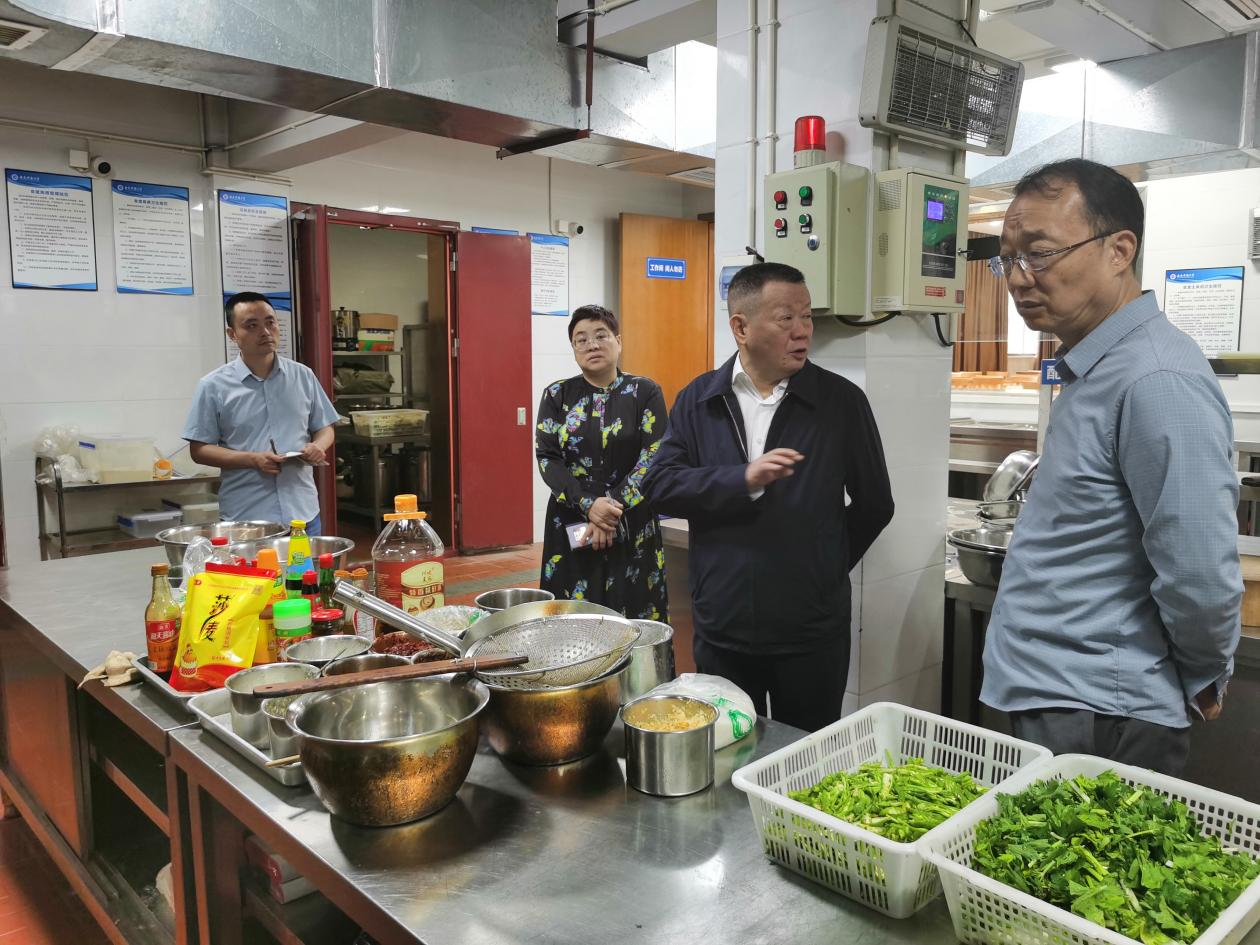 昝平(右2)、蒲晓波(右1)检查教职工食堂