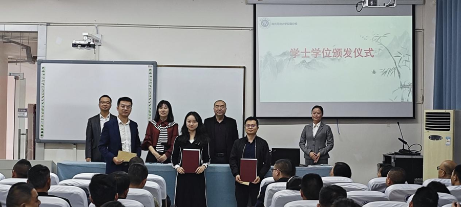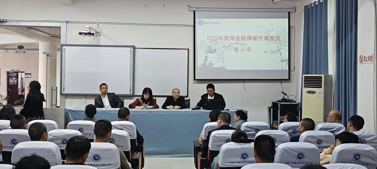 典礼上,首先举行了学位证书颁发仪式并为学位获取同学颁发了奖学金,陈盼作为代表分享了她学习和学位获取的经历和经验,学位证书颁发仪式激发了新生的学习热情和对学位获取的向往。2023年秋学前教育本科班的桑冬梅同学代表全体新生发表感言。她谈了自己对学历提升及开放教育的深刻认识,并代表全体新生表态:要珍惜学习机会、树立自主的学习观念,处理好工学矛盾、努力圆满地完成学习任务。康巍同学代表村(社)区书记班作了表态性发言,一定正处理好学习、生活和工作的管理,在学习和工作中做好示范和表率,力争以优异的成绩顺利毕业。2022年国家级奖学金获得者代表黎小华同学分享了如何做到学习、工作两不误,线上线下相结合等学习方法。他勉励大家学习贵在坚持、重在过程,要做好学习规划,掌握学习技巧和方法,一定会学有所获、学有所成。