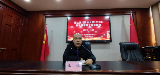 会上,副校长王旗传达了2023年全国开大考试工作会及全省教学暨考试工作会的会议精神;教学科研处副处长潘菁总结了我校2023年教学工作并对2024年教学的重点工作做了安排和要求;教务处副处长任璘对2023年秋“一平台”上机考试及期末纸考相关工作进行了布置;教务处处长游华奎就教务相关工作作了安排和布置。昝平与各分校考点主考签订了《分校考点考试安全责任书》。