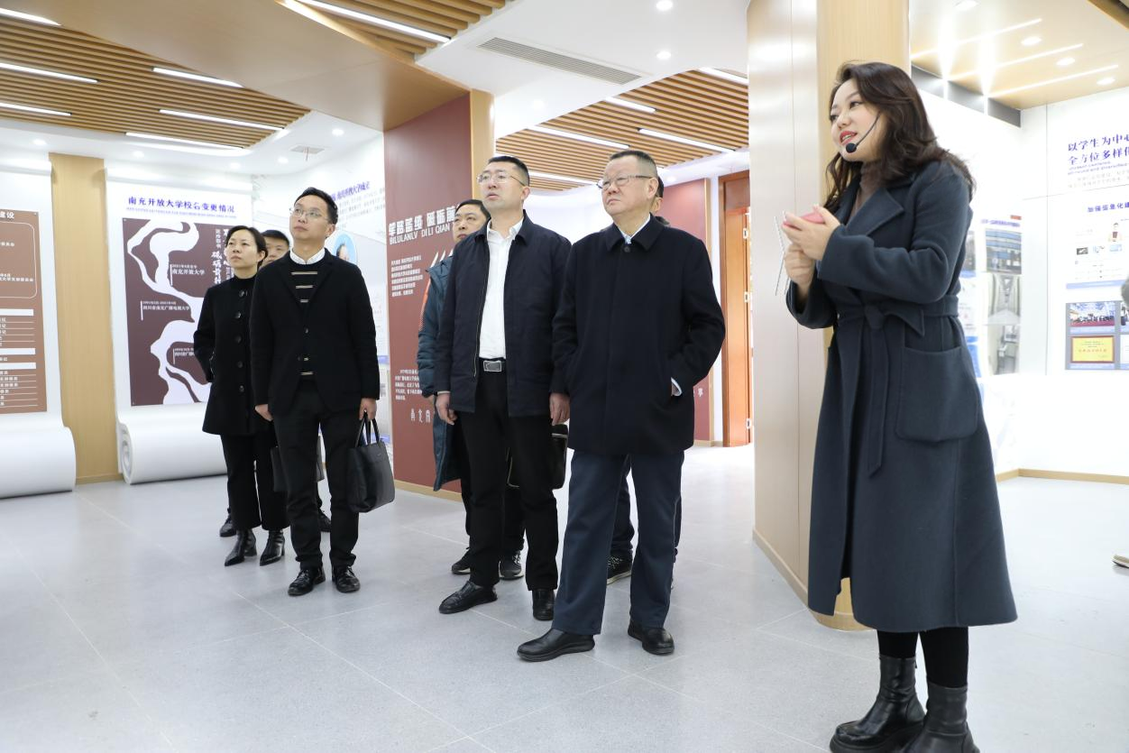 图1.昝平(右二)陪同何多孟(右三)参观南充开放大学校史馆