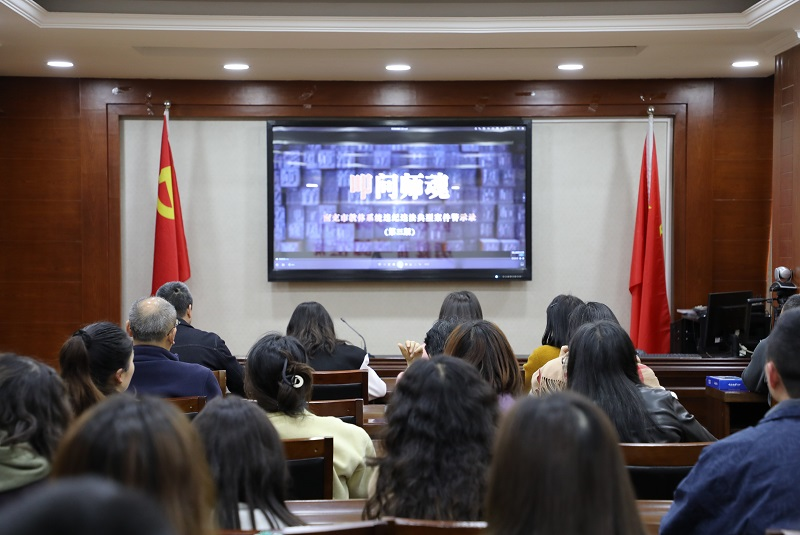 全体参会人员共同观看了警示教育片《叩问师魂(第三版)》。